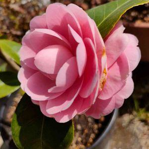 🌸乙女椿🌸 裏にも咲いて枝がしなってるー😅 可愛いねー! 乙女ですねー💓💞 乙女椿は真ん中が閉じたままなんだけど ついこじ開けて中を見たくなります。 2週間前につぼみ付きの苗を買って来たら 温かさで硬かったつぼみが ふっくらして 嬉しい開花の姿を、見せてくれました🤩