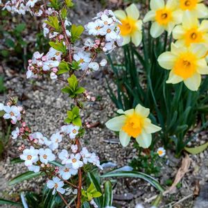 🌸ピンクユキヤナギ🌸 🌸ラッパ水仙🌸 我が家でもピンクユキヤナギが咲きました! 咲く前はピントが合わなくてボケてばかりでしたが 咲いたらピントが合うようになりました。 去年頂いた時から ずーっと開花を待っていたんです😚 濃いピンクではなくて うっすらピンクが可愛いね! ラッパ水仙も咲いてきたので 同じ画面に収めました😃 😟昨夜の地震での被害が 徐々にわかってきましたね。 皆様のところに大きな被害がなければ良いのですが…