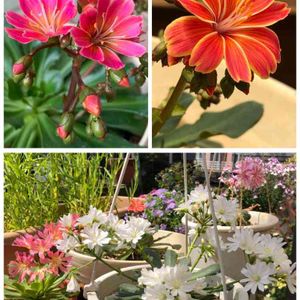 こんにちは🌞 何度も投稿しているレウィシアです。 今日花が咲きました↗️ この子は1月からほぼ休みなく咲き続けている我が家で一番の優等生なんです。 上から見ると葉っぱが直径20cmもありますよ! でもでも花の色が変わったみたい。 もともとはオレンジが混ざったビンクだったのですよ(1月投稿)↖️ まぁいいか、二度楽しめたから。 ⬇️は4種類のレウィシア全員集合! 物干しにハンキングしているのと、物置の上です。 今は白が一番咲いてますね。 優等生さんも花芽を持った枝が5本も出ているから楽しみです🎵 レウィシア愛が止まりません。 お付き合いありがとうございましたm(._.)m