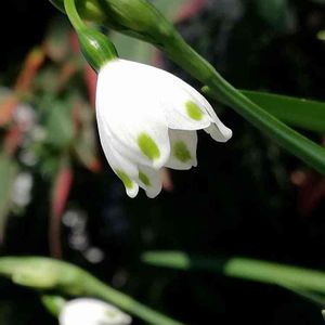 こんにちは! さっき散歩中に出会ったスノーフレークです。 今までスズランに似た花くらいにしか思っていませんでした。緑が入っているのも初めて気づきました。 ちょっとだけ下から覗いてみましたよ! もっと中が気になるな~