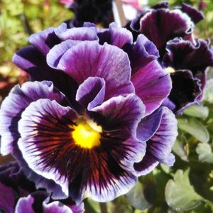🌸絵になるスミレ ミュール🌸 初めて単独でお見せするかもー! フリフリ具合が良くなって、豪華な雰囲気になりましたね💕 よく似てる50円パンジーとはやはりフリフリ具合が違うわー❣️(12/8投稿)