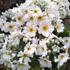 🌸プリムラマラコイデス🌸 朝から雨降りでテンション(๑•́o•̀๑) ↯↯ でも、割と暖かいので 今日も(*•̀ᴗ•́*)و ̑̑がんばれー!わたし😀! 🌼ピンクのはこぼれ種で咲いてますが 白いのは無さそうだから 年末に白いのを買って置いてよかった💕