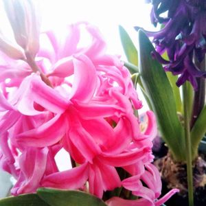 🌸ヒヤシンス🌸 ピンクのが咲きました! もっと柔らかなピンクかと思いきや😚 派手派手ピンクでしたね! 隣には赤紫色(紫表示)のが満開です。 あとひとつ! 白いのが出遅れてますよ😄 ✱昨夜は大きな地震がありました😥 このコロナ渦で被害が広がらないことを祈ります🙏