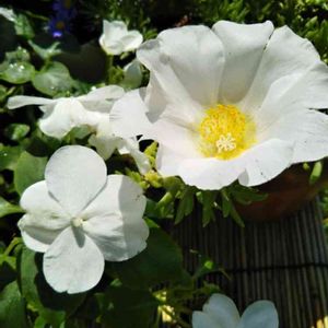 🌸大輪マツバボタン🌸 🌸インパチェンス🌸 両方とも白♡´・ᴗ・`♡ さっき、もっといいpic撮ろうと思ったら、 マツバボタンはもう、萎んでた😅はやっ! 両方とも写ってるのは このショットだけだった😅 白いマツバボタンは去年夏の終わりに買って越冬しましたよ。 これからは白を増やして ホワイトガーデンを目指そうかな😄 (無理😣) ✱どうも大きいなと思っていたらまゆっちさんが 大輪マツバボタンと教えてくれました😃 ありがとうございます💖