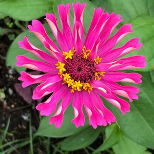 おはようございます☂️ ジニア(百日草)。 八重咲きのポンポンしたジニアがたくさん咲くそばで可愛く咲いていました。 ひらひらの花弁が可愛すぎる😍 色もいいわ〜😍