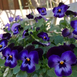このパープルも好きな色🤗 もう1種類淡い藤色のビオラと2色プランターに植えてます。これを2つフェンスに引っ掛けて。