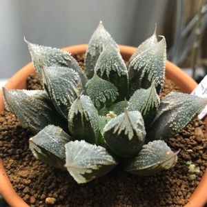 今日のハオルチア🍀は職場の癒し「白帝城」です。 都会の冬も寒い!けど、職場のぬくぬく環境で元気いっぱい育ってます。難点が1点、乾燥が酷く湿度20%ぐらいなので他のハオはどんどん萎んでいく。困ったものです。
