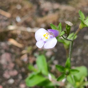 No.250 トキワハゼ 新分類サギゴケ科サギゴケ属 1年草、花期4〜10月 花は約1cm サギゴケと花は似るが、立上っており、匍匐しない。 ゴマノハグサ科からハエドクソウ科に移され、さらにサギゴケ科として独立 6/7撮影、庭にて