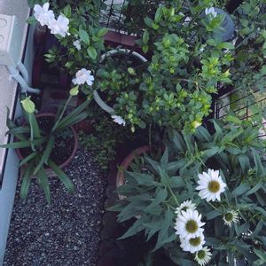 エキナセアとガーデニアが咲き出しました 2年目のアガパンサスにも蕾が…💕 白いお花 集めてみました。