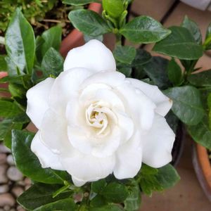 ガーデニア初開花しました🙌 八重でしたね😆👏とってもボリュームがあって見応えあります~🥰 花持ちいいのかな?咲き揃うといいなぁ~🎵