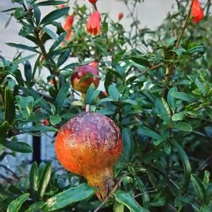 近所の植え込みに植えてあるザクロ 樹高1m少し超える程度で実も小さいです 観賞用で食べられないらしい〜😅