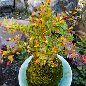 花は二十歳(笑って) まだ蕾……… 姫ざくろを苔玉に
