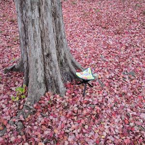 にちようの あさはやく しずかな こうえんを ひとりじめ😊 あかい じゅうたんのうえを あるきました 🍁🍁🍁…🚶♀️…🍁🍁🍂 トウカエデの 🌳きの したに ポツンと ちいさなイスが ひとつ これは きっと かわいい おきゃくさん👧👦の わすれもの