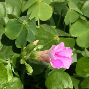 ピンクのオザギリス初めて花咲きました🌸 この子は大きい葉だと思っていましたが、、小さい葉で花も🌸小さいみたい。 カタバミかしら?