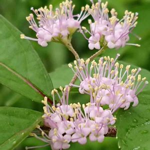これは紫式部のお花でしょうか⁉ 初めて見ました🎵 もう小さな実も沢山ついていました😃 間違っていたらごめんなさい😌
