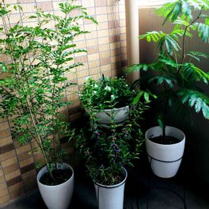 もう一枚。部屋の中の観葉植物も今日は水浴び〜日光浴(^^)