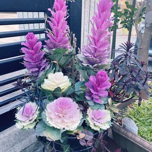 葉牡丹さーーーんどこまで伸びるのーーー??!笑 徒長しちゃいました(´>∀<`)ゝ 後ろのエリカも枯れちゃった、、、🥲 枯れた苗は取り除くとして、これはこれで面白い寄せ植えになってるので、そのままで楽しもうかな!?笑 週末メンテしよ🙌
