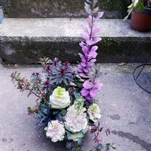 こんにちは☀️ ヒヤシンスの寄せ植えPart2が完成しました! 珍しく赤紫のヒヤシンスが2つ咲いたよ🌸 ビオラは値下げ品を買って植えてたけど、調子悪くて植え替えちゃった…(´・ω・`) ついでに解体した鉢から取ってきた葉牡丹も追加ꉂ(ˊᗜˋ*) 紆余曲折あったけど、とても気に入ってる寄せ植えなので、またやりたいと思います🥰 とりあえず今季はこの子を楽しみます( •̤ᴗ•̤ )♡
