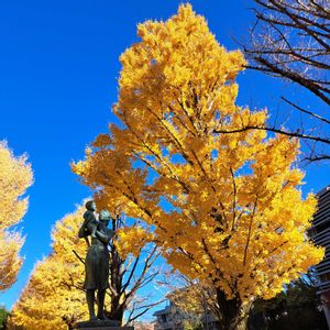 青空と黄金色のイチョウが綺麗です 💙💛。