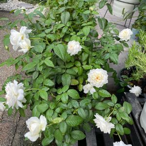 🤍🤍🤍🤍ボレロ🤍🤍🤍🤍 木立性で半横張りのコンパクトな樹形なので、狭い庭にピッタリのバラだなぁと思います😊 花が開ききる前の中心がほのかにピンクになっているのが特に カワイイ(,,> <,,)♡です❣️