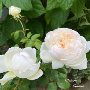 お願いよボレロ 見透かされているようでドキドキするけど 私の心の中の悪魔煩悩罪の全てを(笑) お願いだからボレロ きれいさっぱり浄化してください こりゃとても無理だとどうか言わないで(笑) お願いよボレロ どこまでも純粋に白く白く綺麗でいてね お願いだからボレロ 私の分まで(笑) 世界でもっとも愛されるバラと言われる 「ピエール・ドゥ・ロンサール」の 人気に迫るボレロ 花一輪が美しくクラシカルなカップ咲き 咲き始め花の中心に乗るほんのりとした ピンクがたまらなく愛らしい 完全四季咲きしかも多花で花保ち良し 最後まで花形がだらしなく開きすぎない 記憶に残る素晴らしい強香の持ち主 病気知らずで育てやすい これだけ条件の揃ったバラはなかなか〜 無いと思います 私の💕First Boleroなのです