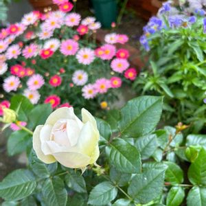 こんにちは😃 どんよりとした日曜日 こんな日は庭のお手入れにピッタリです。 昨日のテーブル花より どれもお気に入りの薔薇 ラブロッシュ レイニーブルー ボレロ どれも優しい色合いで可愛い💜
