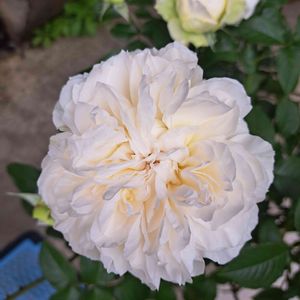 トリニティ🤍 ボレロ🤍&ブルーグラビティ💙 スッキリとした香りのトリニティさん♡ 開くの待ってる間に ヤツら(🪲🪲)に集られちゃならん! と、少し早めの記念撮影📸 重なる花びら 真ん中アイボリーが可愛い〜💕💕💕 なんて、キュンキュンしながら写真を拡大して見ると… ガーン😑 もう齧られた跡があるやんけ!😮💨😤🤣