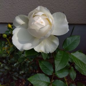 今年お迎えした薔薇 ボレロが咲きました♡🤍♡🤍♡ 他の蕾はまだ小さいです。 フライングかな? 純白で花弁が幾重にも重なります。咲き進むと中心がピンクになるそうです。 いい香りもします。💕 No.6