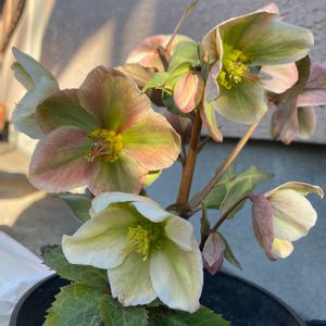 クリスマスローズ 今年は、沢山の花をつけてくれてます😊 ↖️ステルニーミックス 葉っぱがギザギザで💚のお花 お気に入り ↗️ピンクフロスト 濃いピンクが表から見ても裏から見ても かわりなく、下を向いて咲いていても 存在感あり ↙️シナモンスノー 早くから咲き始め 次々と花を咲かせ 楽しませてくれてる。 🤍→💖→💜→💚色の変化で飽きません。 ↘️ダブルイエロー糸ピコティ 小さな苗からの2年目... 今年 花は、諦めていたけど急成長 して初のダブルさん登場✨ もうしばらく楽しませてくれそうです🥰