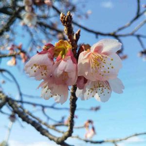 椿寒桜と出会いました😆 初め梅の花かと思ったらサクラ🌸の花でした😅 椿寒桜はカンヒザクラまたはカンザクラとカラミザクラとの自然交雑と考えられる園芸品種だそうで名称は愛媛県松山市の伊豫豆比古命(いよずひこのみこと)神社(椿宮)に原木がある事に由来しているそうです。 素敵なサクラ🌸と出会えてウキウキでした😆