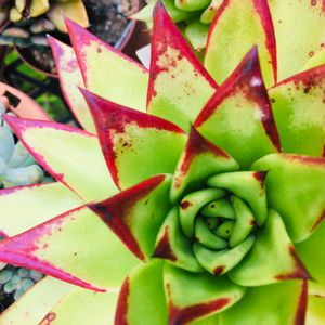 ※ダイプー様から、アガベではなく、 エケベリア属アガボイデスとのご指摘がありましたので、以下、名称修正させて頂きました‼️ ダイプー様、ありがとうございます😊 ⚠️どなたか、エケベリアの年間の管理を教えて下さい!! 植え替え後にいつ水やりされてるか、遮光や、雨避けなどの注意点もお願いしまっす(T□︎T)⚠️ 写真は、エケベリア属アガボイデス・マリア様💕 ミドルネーム(?)付きとは、さすがマリア様(。-∀︎-) ニヒ♪︎ 10月3日にお迎えした、 歴代のうち子たちで、一番の高額な子😂 しっかし、やらかしました!! この2日後、葉焼けしましたー😒😱 マリアと一緒に買った、他のエケベリアの一部もです😣 葉焼けした原因は、 一緒に行った友人によると、 生産者さんは年中15%程度の遮光と風を当ててとのこと😭 うちの直射日光は今の時期、 一番暑い昼からの4時間ぐらいが直接当たってます… そりゃ、焼けるわ😣 せっかくうちの子になったのにごめんよ〜(´Д`;) 初めてのエケベリアなので、 なお悔やまれます! 大反省です(T□︎T) 自分に厳しく、エケにベタ甘にしますので、よろしくお願いします😣