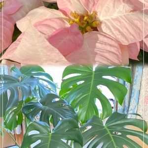 優しいカラーのプリンセチアと どんどん大きくなるモンステラ