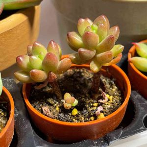 去年の秋に連れて来た子たち3種🤗☘️ GSで見て、可愛い~💕って思った 👈🌿レモータさんに出会い、 2つ以上で割引…の文字にのせられて迎えた 👉🌿ホワイトストーンクロプ…🙄⁉️ 全然ホワイトじゃないけど なんでホワイト♡🤔⁉️ ☝️はお安い園芸店からだったかな… 新玉つづりです🤗 後で知ったのですが…(^^;) 新玉つづりって、ビアポップなんですね😅 うちに小さな挿し芽っ子が居るけど それよりもつぶつぶがおっきいです(*≧艸≦)