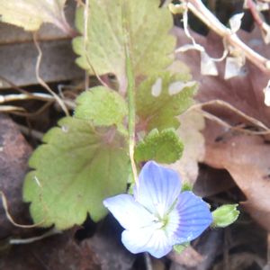 「ヒメオドリコソウ」と「オオイヌノフグリ」が仲良く群生している原っぱがあった。