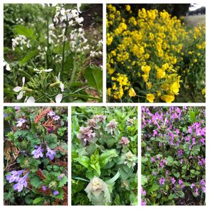 おはようございます😃 駅前駐輪場脇にスギナの中に💚 ハハコグサ💛 ヒメオドリコソウ💛💖 ハルジオン💖🤍 優しい色で、みんな可愛い💕 🏷木曜モフモフ😊