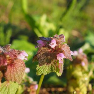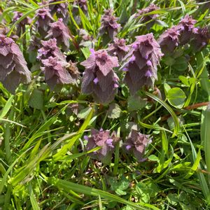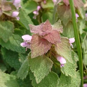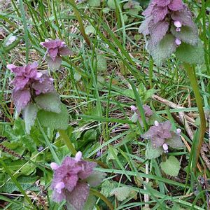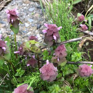ヒメオドリコソウ いつ見る色と違う。花壇に咲いていました。