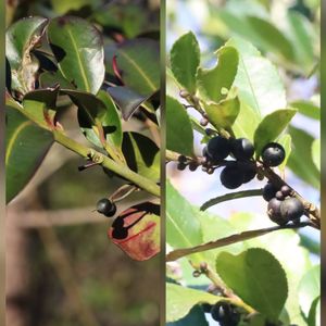 ①②姫榊(ひさかき)果実サカキ科 常緑小高木 果実は直径7mmほどの 球形で 黒紫色に熟す 雌雄異株 ③楤の木(たら)果実 直径約3mm ウコギ科 野鳥は好んで食す🎶