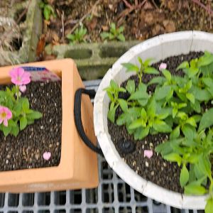 植えてから9日玄関で待っていたこを外へ ☂️雨降ってきたけど大丈夫かなぁ オステオスペルマムサン(寝腐れさせてしまい療養中💦)みたいになりませんように💦 もりもりなぁれー 今年のサフィニアは 小梅ちゃん とらネコちゃん 💠✳🍀✳~💠🌱💠🌱💠~✴🍀✳💠