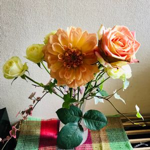 色んなお花を少しずつ寄せ生けました😊 こんな時こそ、お家にお花を飾りましょ♪って我が家では常に何かしら生けてますが~😉