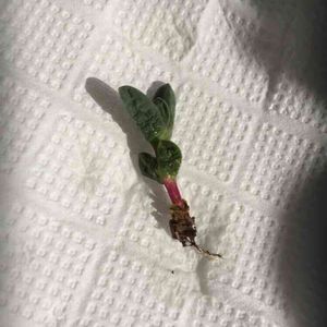 今日は久しぶりに天気が良いので、シワシワのランプランツちゃん引っこ抜いてみました(´・ ・`)画像わかりにくいですが、新しい白い根っこが2本でてきてました(^^)古い根っこは切ればいいのかな?とりあえず乾かしてます(*・з・*)