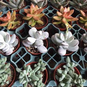 ホームセンターでこのトレイ買ったので、1号鉢のちっこいのとか植え替え! こうやって並んでると愛しさ倍増する♡