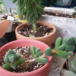 2017年5月22日にサボテン団地で購入して我が家に来た子達。 私好みのフォルム。 しかしすべて名前が分からず。 調べてみた結果。 写真上、奥の列の右から 🌱クラッスラ属 神刀 が2点 🌱レデボウリア属 ソシアリス 豹紋 が2点 手前の列右から 🌱ランプランツの何か 🌱ガステリアの何か そして 手前の左の子は? どなたか知っていたらお願いしますm(__)m 神刀も合ってるかどうか・・・。 毎日調べ続けて楽しかったがもう疲れた(*_*) 写真だけで探すのは難しい。