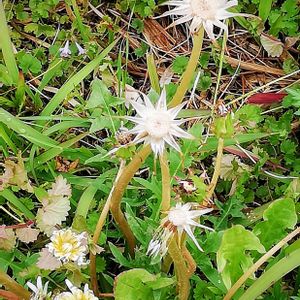 シロバナタンポポの雨上がりの姿😅 微かに種が残っている😅