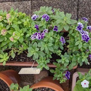 イオナンタ ルブラが開花しました〜 昨年は開花して子株が出てくれて 今年も期待です〜😊 ペチュニアラズベリーシジャムを2週間前に刈り込んで 又モリモリになりましたよ