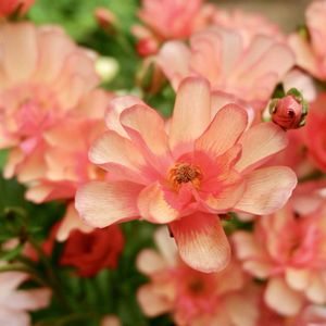 おはようございます😊 ラナンキュラスラックス エリスが咲き始めました🥰 よーく見ると、あれ? 小さいバッタみたいなのに、食べられてる😓