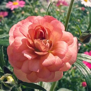 Ranunculus Rax -Eris- バラ🌹のような咲き方をするエリス✨ 蕾〜咲き始めは濃いめサーモンピンクですが🍣完全に開き切る頃には、花びらがクリーム色になって来ます🍰💕 クリームの花びらの縁にサーモンピンクが残った、優しいお色🥰 もう少ししたら変わりますよ〜🌸 ラックスは、咲き進むと花色が別物?ってくらい変わる品種結構ありますよね💡😲 ちなみにエリスは、『不和と争いの女神』 多くの災いを生んだ母です🤱 やはり、可愛いだけじゃない💪