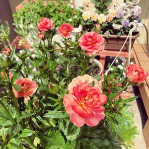 ラナンキュラス ラックス:エリス🌸 奥に見える開きかけのお花がティーバとロティスです☺️ もう本当にラックスお気に入りでまた写真撮っちゃいました‼️笑 咲きはじめの姿がまるで薔薇のようじゃないですか?? 3株とも1番花は散ってしまうところだったのでカット✂️しています こんなに寒いのにどんどん蕾が開花していっててすごいですね✨