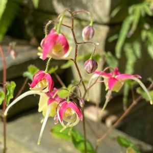 玄関前の山野草坪庭でイカリ草が咲いています💕 もう20年程前に購入して今に至ってる。 中国産のイカリ草、雀のお気に入り〜🤗 今日夜から明日の昼まで雨降りだとか⁉️ 女房向けの花壇がもうすぐ出来上がり、頑張って作り上げますばい💪 🐥