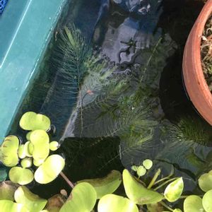 ベランダ生簀の水草です。 マツモが室内で管理する水草よりモサモサで驚きました。 アナカリスにウィローにマツモが半分占めています。