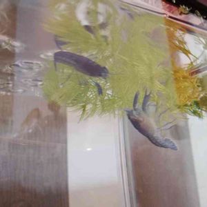 水草+メダカ 水草は一進一退で増えもせず、減りもせず😅 メダカは少し大きくなった気もする😃 一番大きい子(尻尾しか写ってないorz)が雄♂で後2匹は雌♀ みんな元気に大人になれよー(*´∇`*)